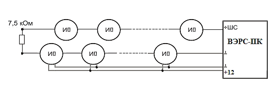 В шлейф сигнализации приборов ВЭРС-ПК возможно включить датчики, если их интерфейс подключения в ШС соответствует включаемым в шлейфы прибора охранным или пожарным извещателям (см. схемы подключения в Руководстве по эксплуатации прибора).