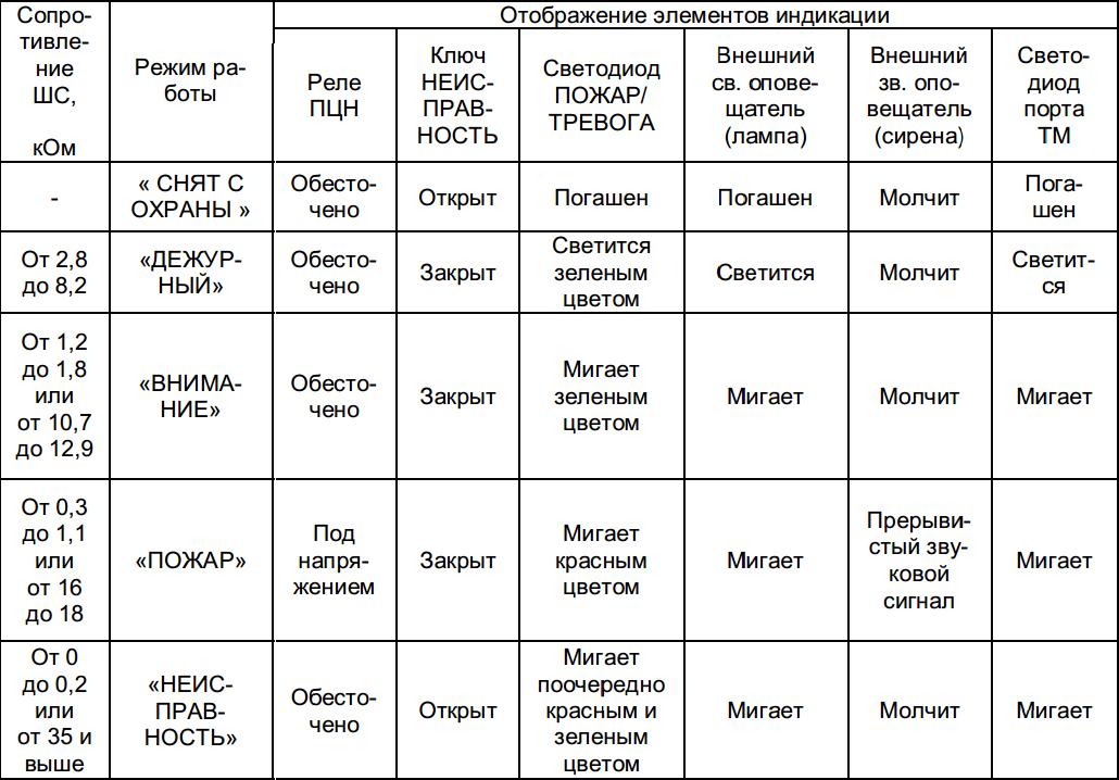 Независимо от марки провода, которым выполняется ШС, должны быть обеспечены следующие параметры каждого ШС: Сопротивление утечки между проводами ШС, кОм, не менее: 1) для охранного ШС – 20; 2) для пожарного ШС – 50; Сопротивление выносного резистора – 7,5 кОм; Максимальное сопротивление ШС без учета сопротивления выносного элемента не более 220 Ом.