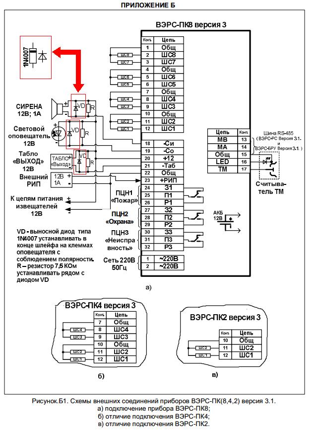 Можем Вам предложить схему подключения прибора речевого оповещения «РИТМ», выпускаемого компанией ВЭРС, к прибору ВЭРС-ПК.